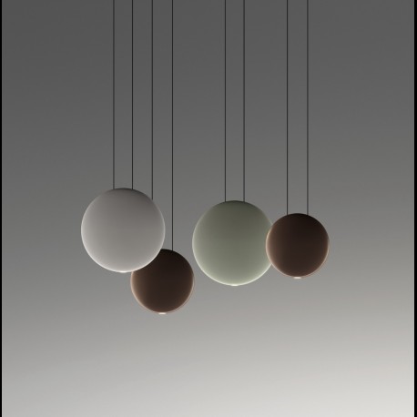 Cosmos est une suspension sculpturale. Conçue par Lievore, Altherr, Molina. Simule une constellation avec plusieurs lunes, disponible en plusieurs couleurs : marron chocolat, vert, gris clair et blanc.